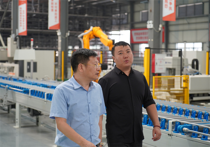 随后,参观了工厂的数字化生产车间,双方团队围绕生产与交付进行了深入探讨。欧阳董事长表示:“欧大师自创立之初,就以设计研发生产能力跻身行业第一梯队为目标,在战略规划中,围绕生产技术与制造工艺上不断创新展开,利用技术赋能门窗生产,构建数字工厂和高效规范安装服务;以技术赋能生产,打造绿色工厂,推动生产线数字化打通为发展主线,推动智能化、高效率、数字化、可持续的门窗制造业优化升级。”